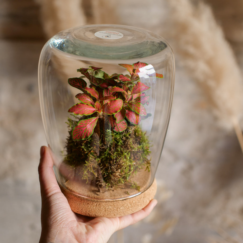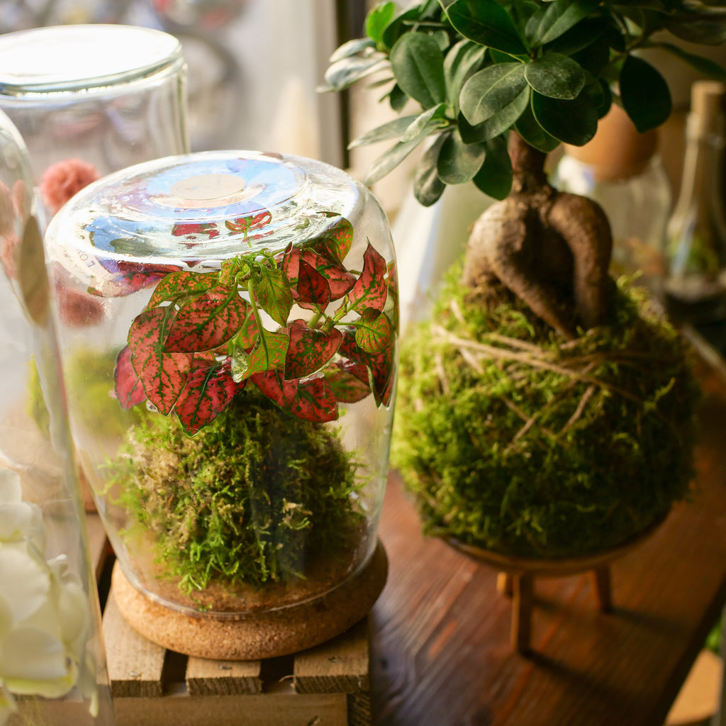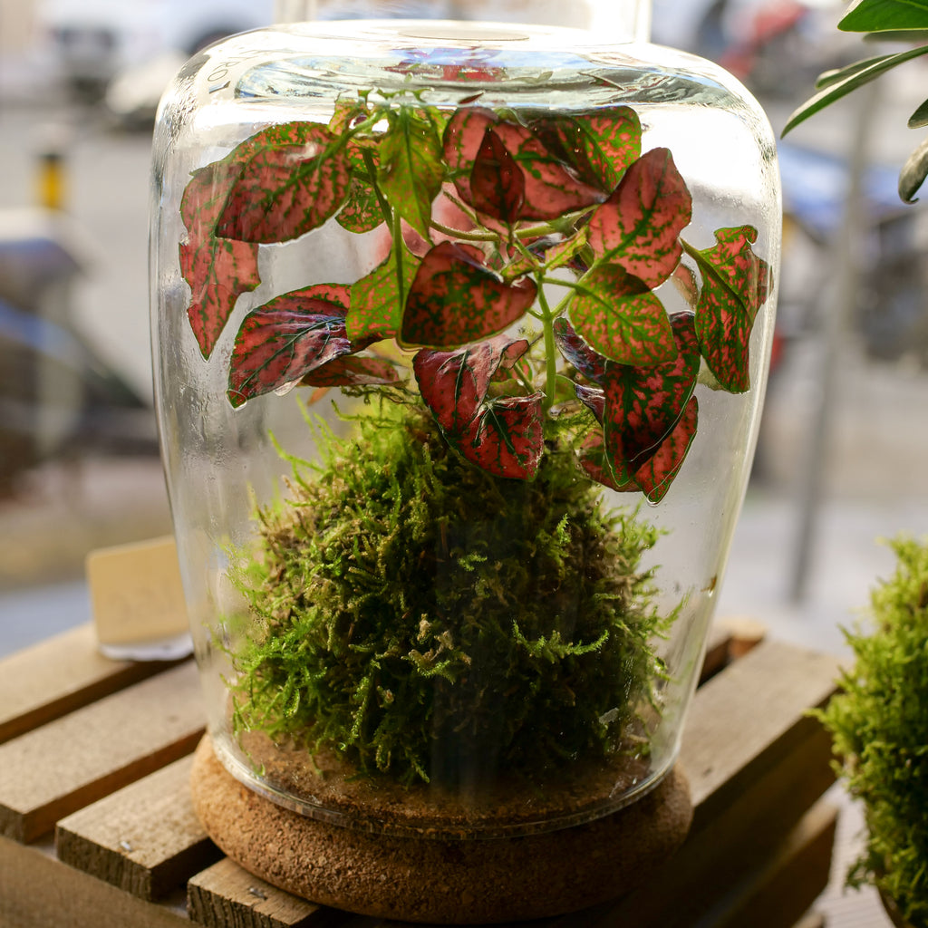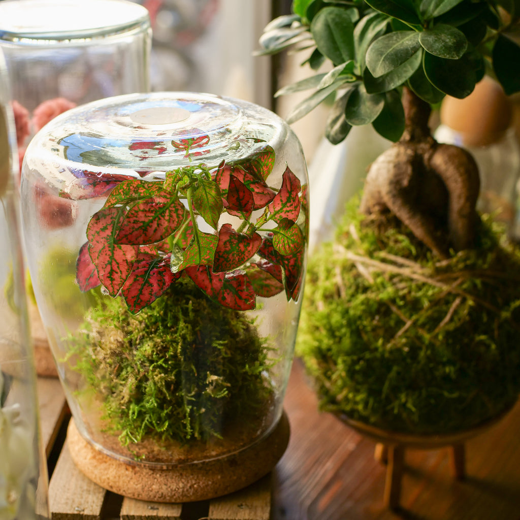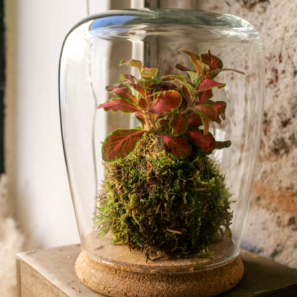 Il piccolo classico Terrarium-Kokedama diventa più grande! Questa creazione vede protagonisti un recipiente di vetro...